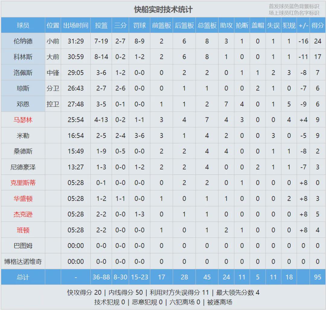 杜蘭特22中8得26分6板3斷5失誤,申京14中9拿到22分7板5助3失誤,謝潑德10中6拿到16分6板4助4失誤。倫納德19中7得24分8板3助1斷,連續(xù)32場砍下20+。馬瑟林13中4拿到9分7板4助3斷,手感一般,但是在場上活力十足。