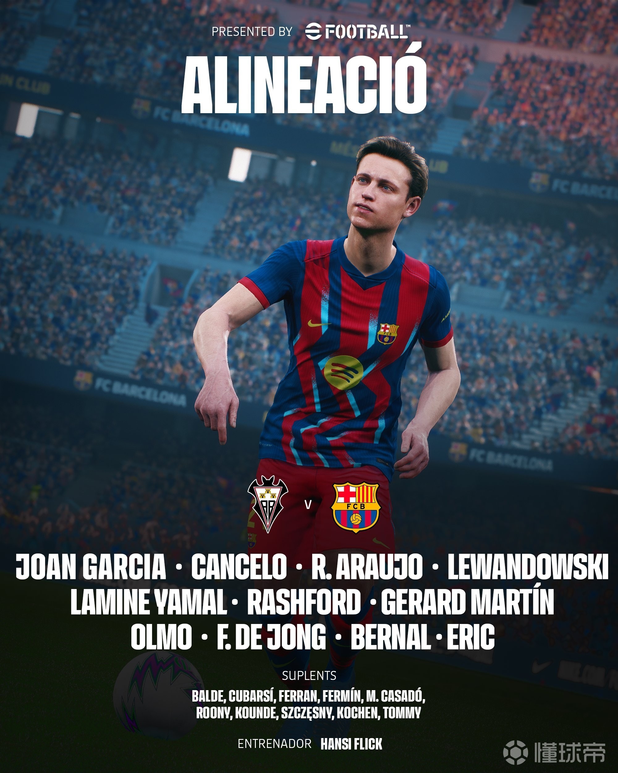 替補(bǔ):25-什琴斯尼、31-迭戈-科亨、3-阿萊士-巴爾德、5-庫(kù)巴西、7-費(fèi)蘭-托雷斯、16-費(fèi)爾明-洛佩斯、17-卡薩多、19-巴爾德吉、23-孔德、43-托馬斯-馬克斯