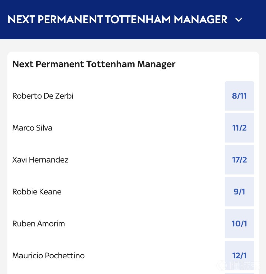 熱刺新帥賠率:德澤爾比居首,哈維、阿莫林、波切蒂諾上榜